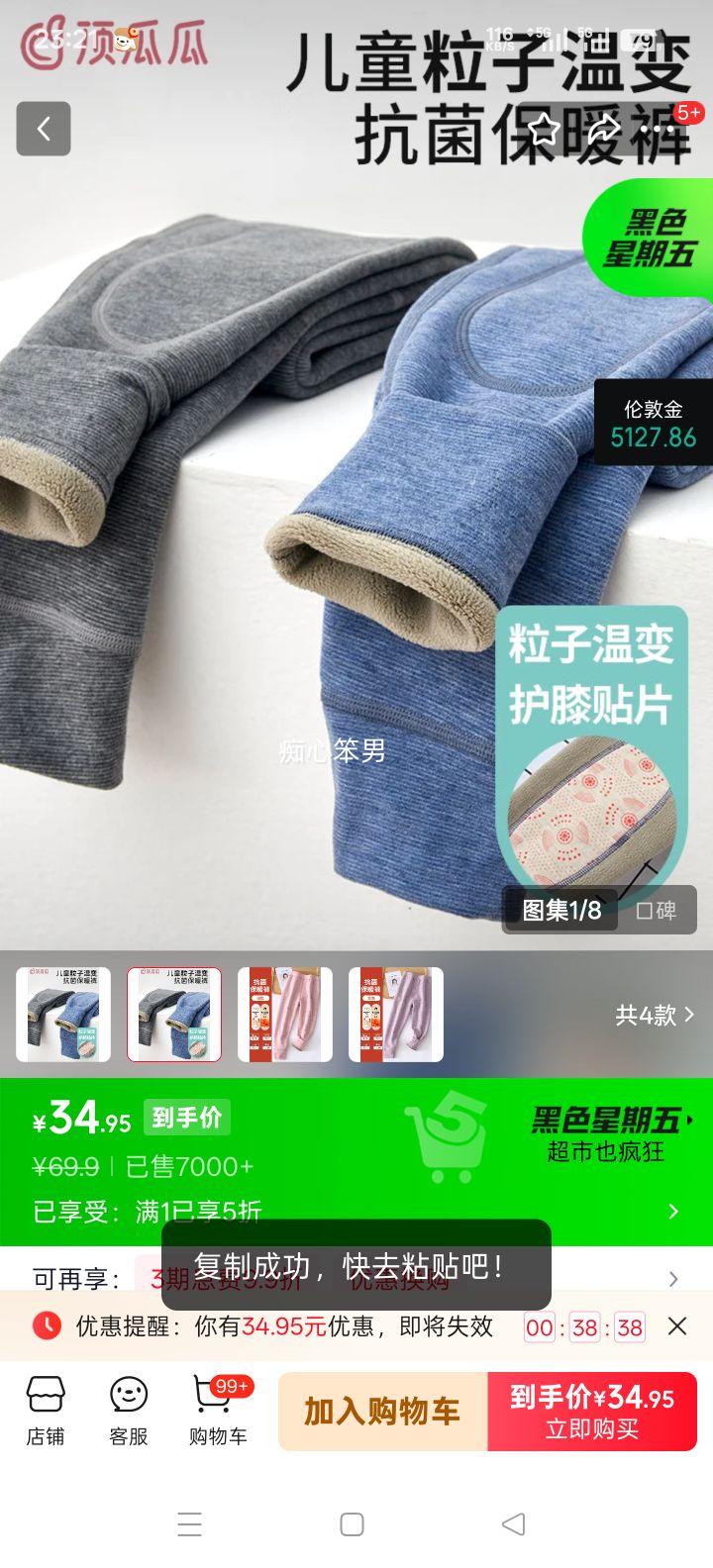 顶瓜瓜 儿童加绒保暖裤 160cm 灰色 身高150-160 体重65-75斤34.95元