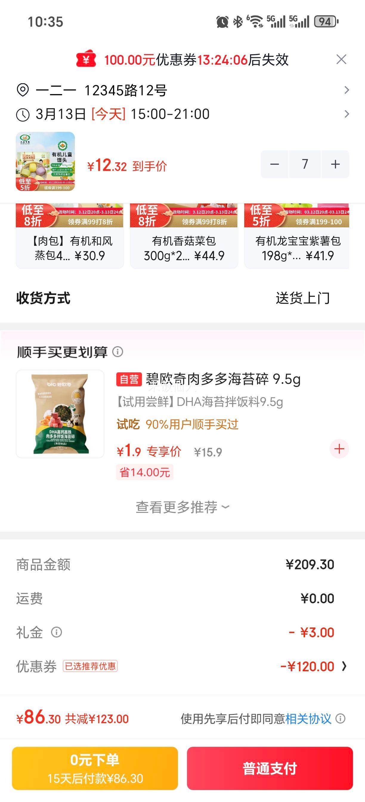 陶陶居 任选六件3折! 陶陶居虾饺*核桃包*叉烧包*速冻生鲜包子*粤式点心*陶陶居杏鲍香菇素菜包*鸡肉卷