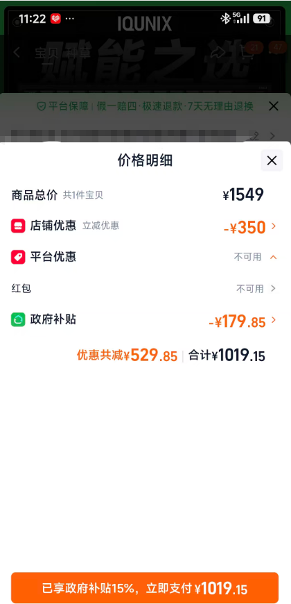 享15%政府补贴