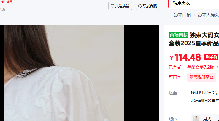 满1件,打7.2折