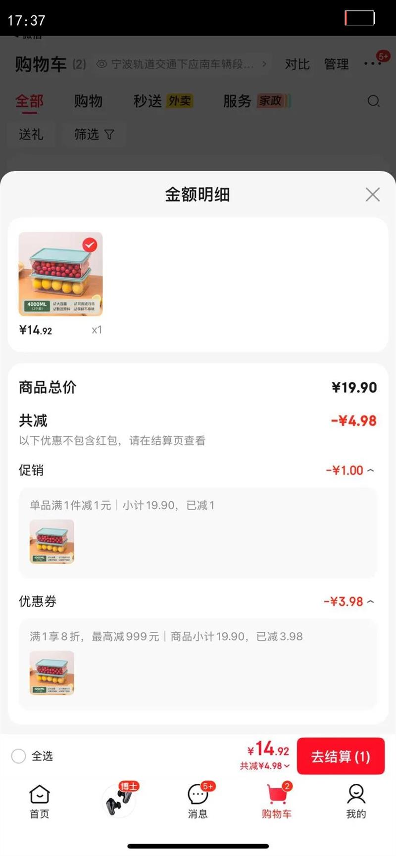 21.41元(叠加全能卡红包后19.41元)