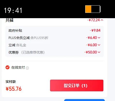 21.41元(叠加全能卡红包后19.41元)