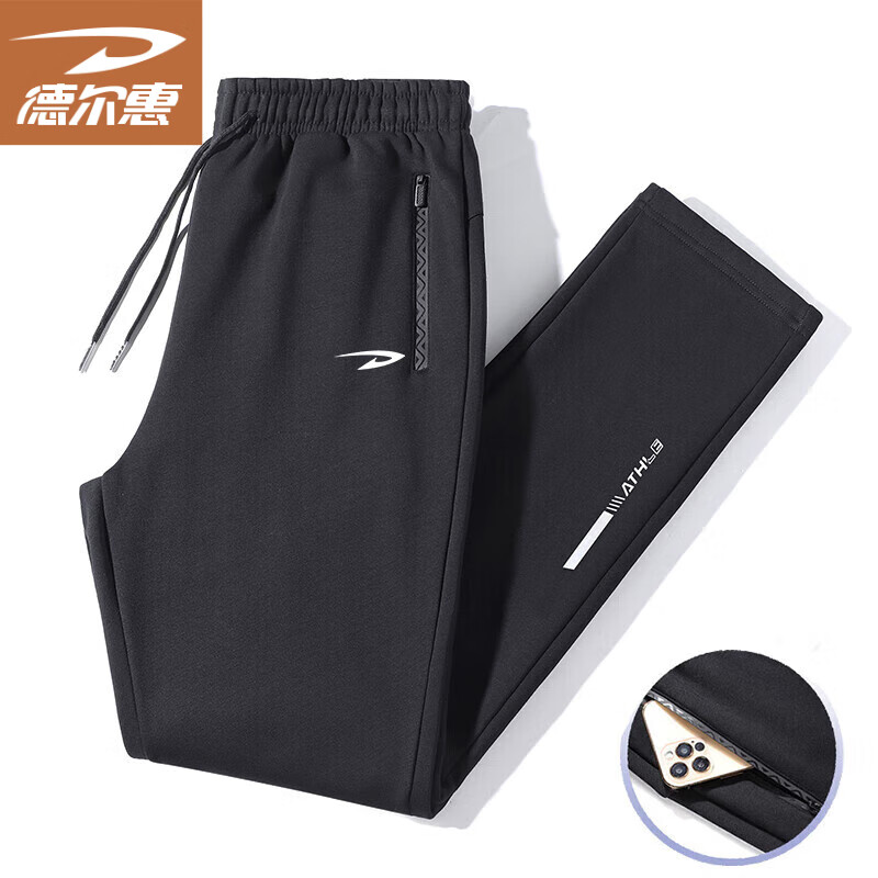 百亿补贴:德尔惠休闲裤男秋冬季中青年运动新款潮流休闲宽松户外百搭长裤 LG-musilin-8813黑色直筒 2XL -(135斤-150斤)