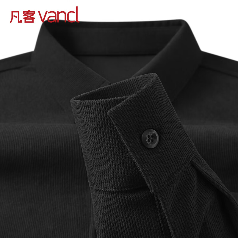 百亿补贴:凡客诚品(VANCL)男士长袖衬衫男秋冬款灯芯绒翻领上衣休闲宽松男装衬衣 黑色 2XL