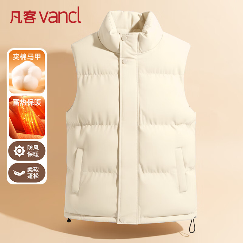 百亿补贴:凡客诚品(VANCL)马甲男士秋冬季加厚保暖立领背心大码外穿无袖坎肩男 米白 M