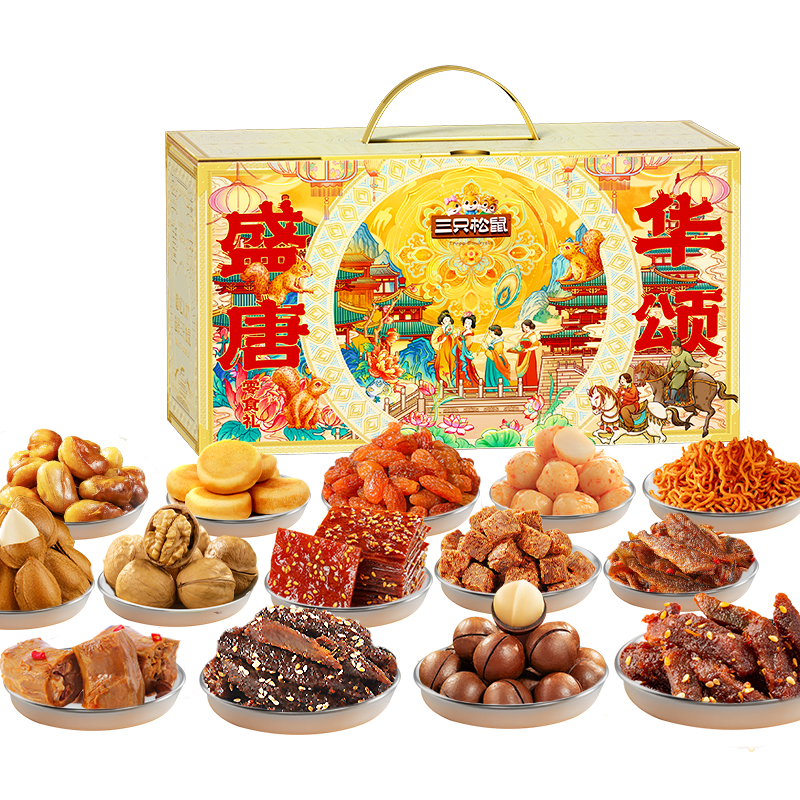 百亿补贴:三只松鼠盛唐华颂零食礼3529g/35袋休闲零食蜜饯办公室精美包装圣诞新年礼