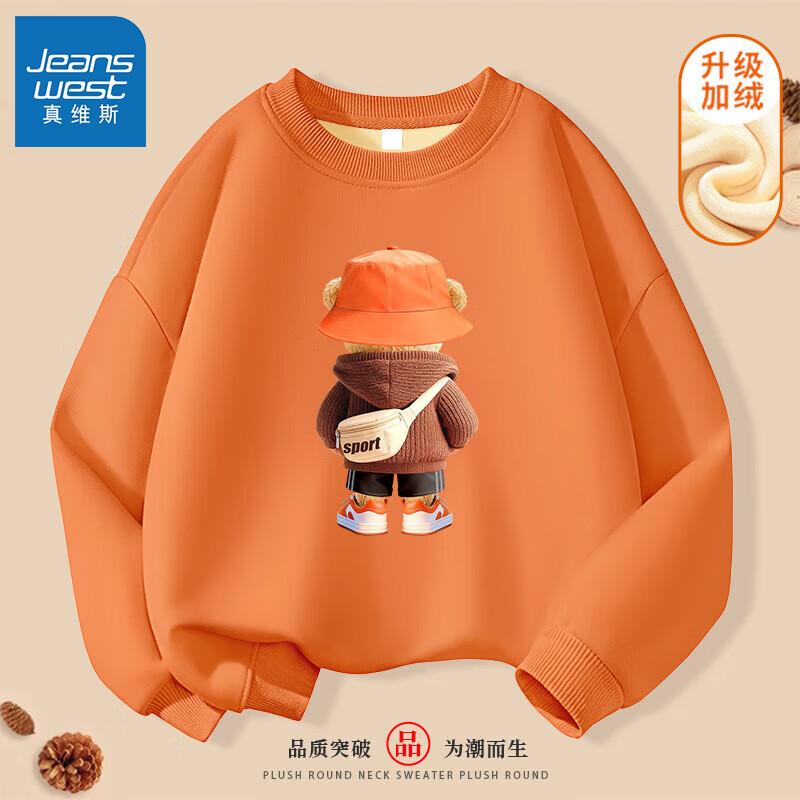 百亿补贴:真维斯(Jeanswest)男童套装秋冬新款儿童加绒加厚长裤中大童防风保暖卫衣卫裤童装 【亲肤柔软耐磨加厚银狐绒卫衣】13 120 【推荐体重37-45斤】