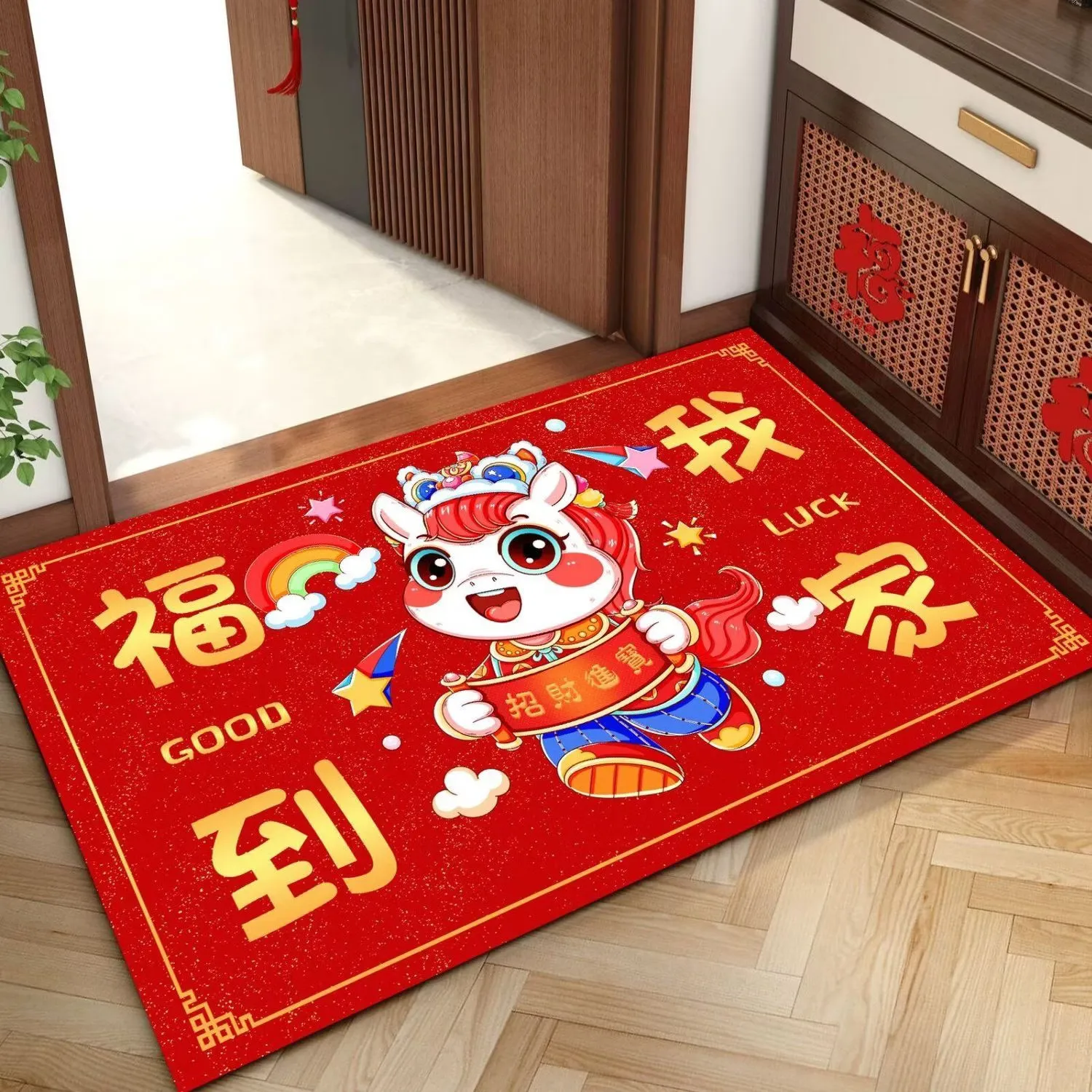 飞镖 新年红色地垫 50*80CM 随机图案 入户玄关厨房卧室脚垫